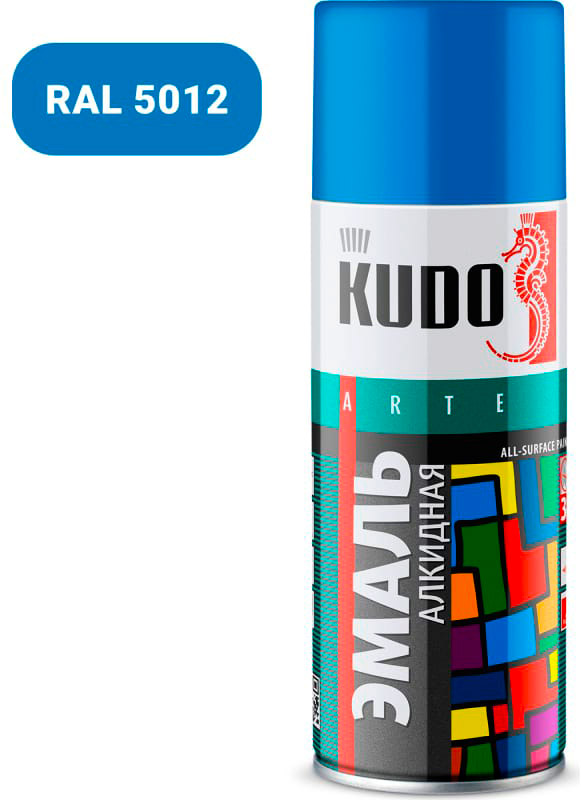 Аэрозольная краска в баллончике KUDO высокопрочная алкидная универсальная голубая 520 мл. KU-1010